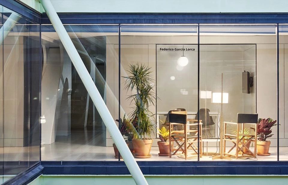 本次分享的案例是一家科技公司,它的新总部位于美国巴塞罗那的Media-Tic大厦顶层。原先的空间风格偏中性和理性,同时又略显冷清。由于是围绕着一个中庭而建,导致其用于支撑建筑的屋顶桁架对整体视觉效果有着「压倒性」的干扰。所以重新设计装修的主要需求便是增强空间的多元化和舒适感。